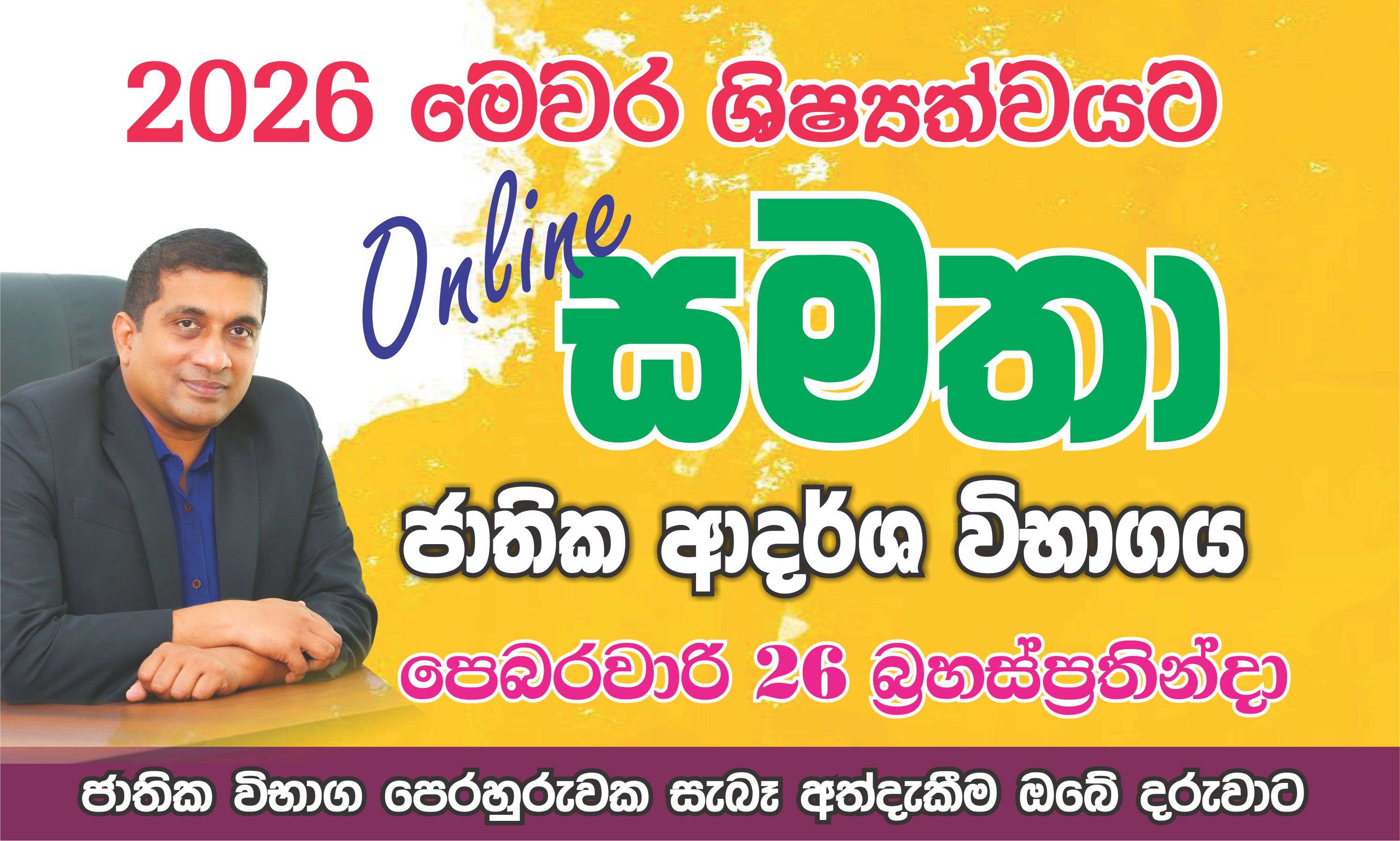 FEB. 26 - II පත්රය - උදේ 8.15 - 9.30 , I පත්රය - උදේ 9.35 - 10.35, පිළිතුරු සාකච්ඡාව හා උපදේශනය සවස 6.15 - 8.45